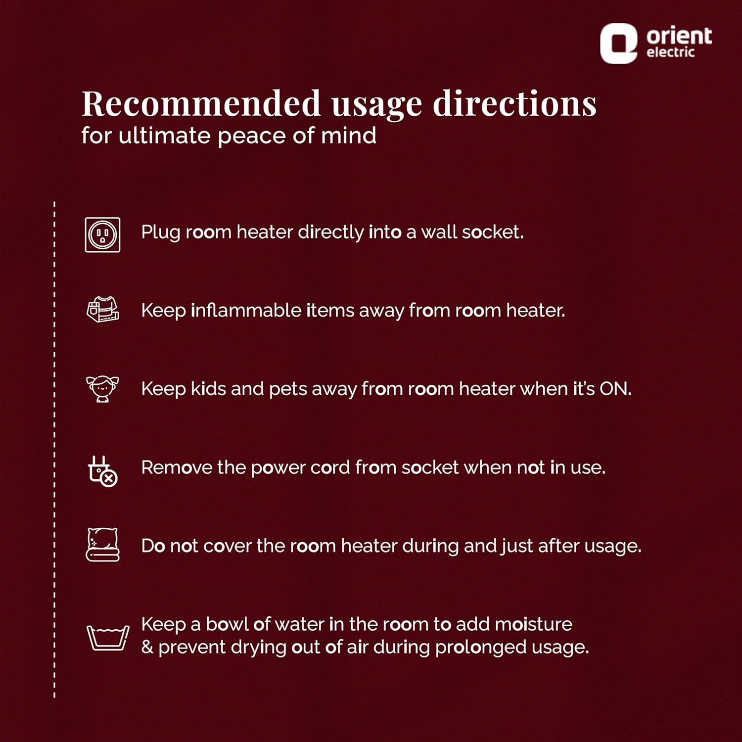 • Enjoy complete protection & long life with in-built safety features: The room heater for home is equipped with safety features for temperature control, preventing burnout of heating elements, protection against overheating and fire hazards.