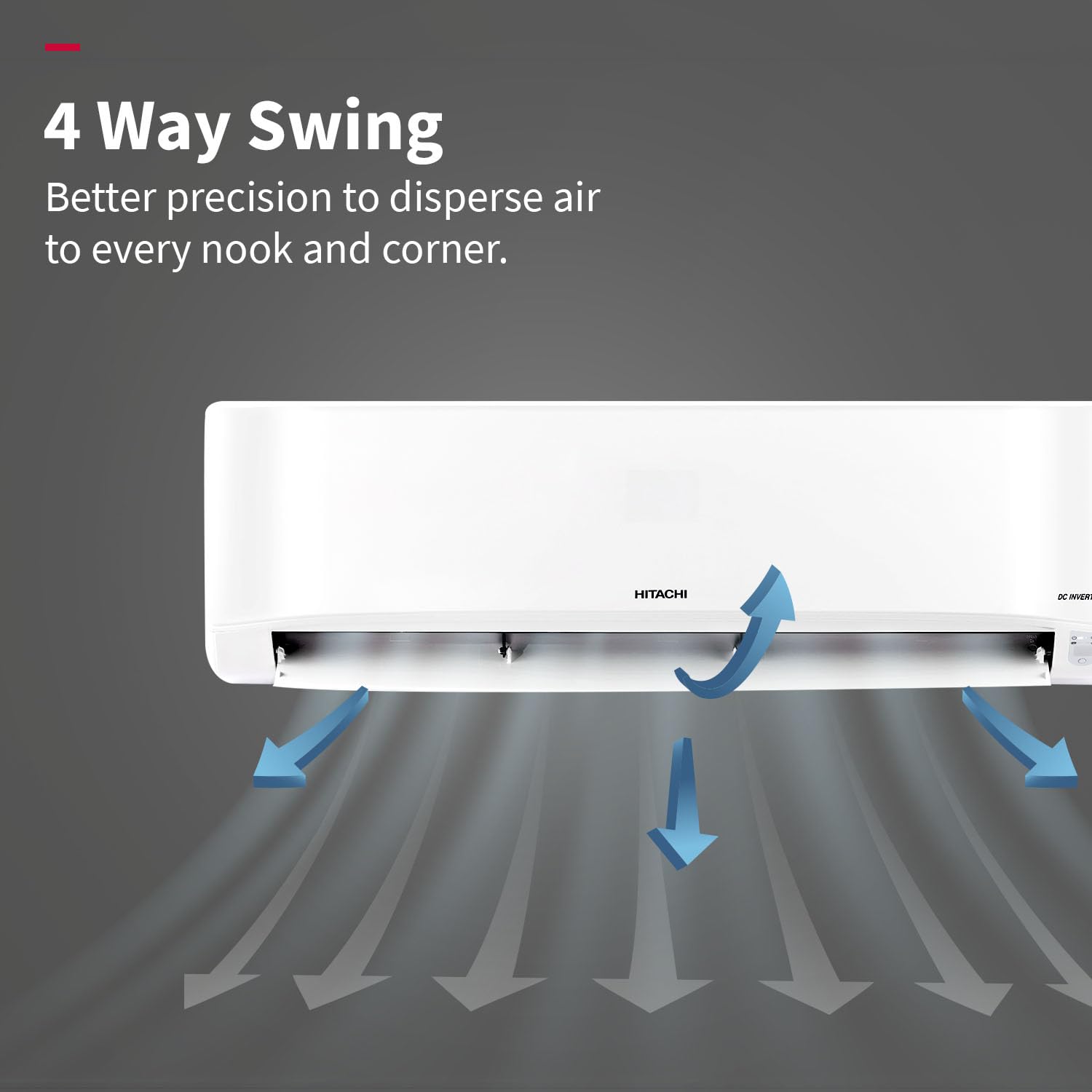 Hitachi 1.5 Ton Class 3 Star Xpandable+ Inverter Split AC (100% Copper, 4-Way Swing, ice Clean, Dust Filter, 3400SXL RAS.D318PCCIBS, White)