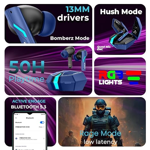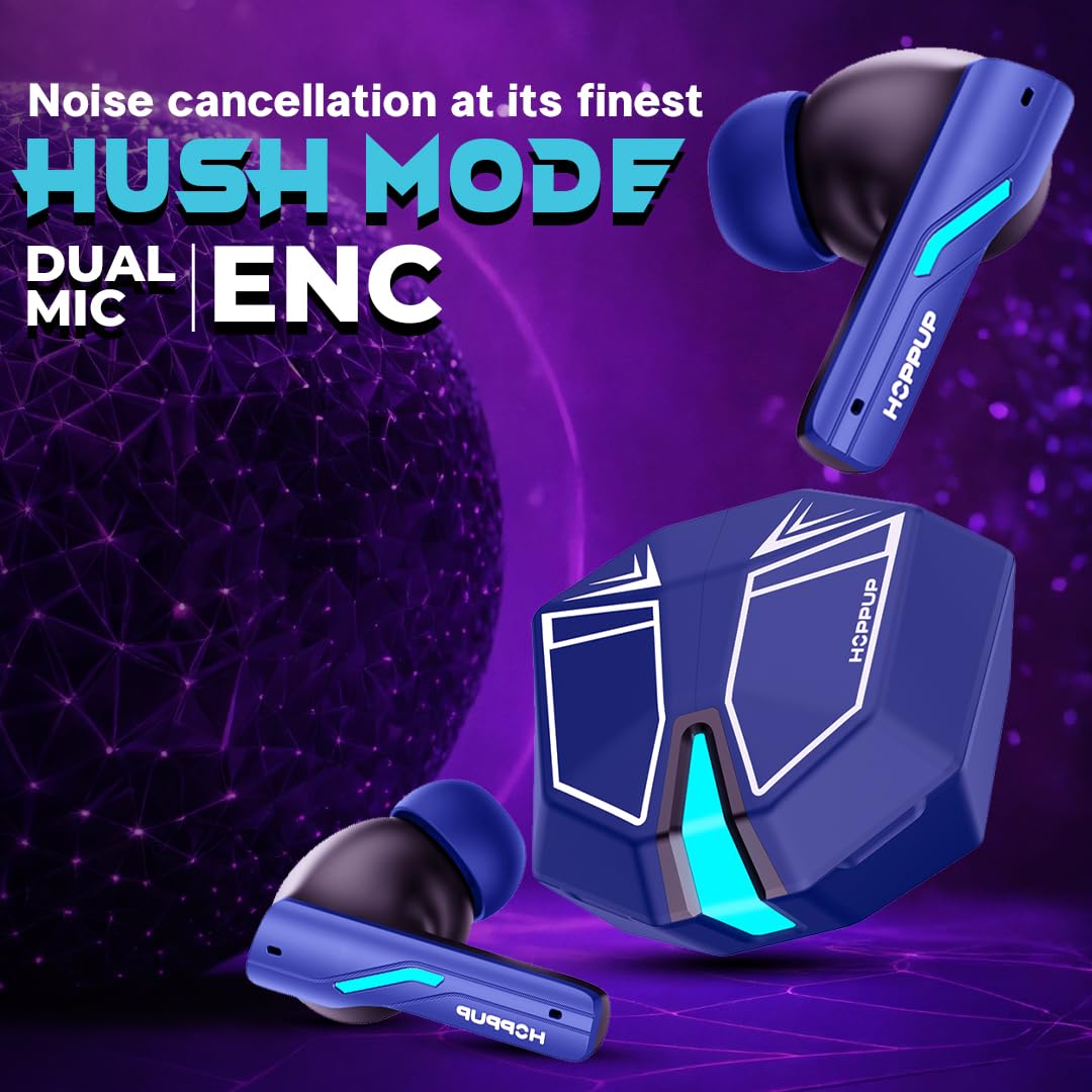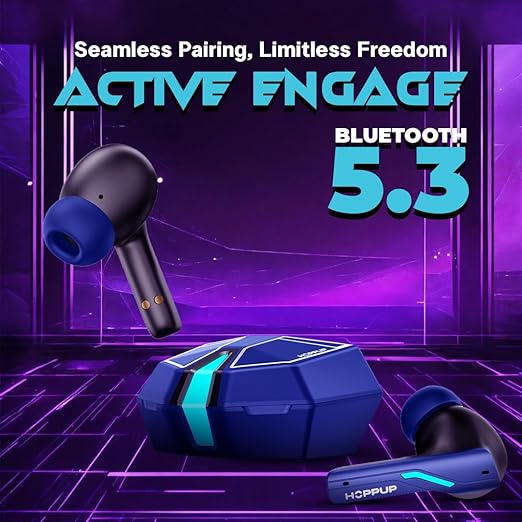HOPPUP Xo6 Gaming Earbuds with 35MS Low Latency, RGB LED, 13MM Drivers & 50H Playtime Bluetooth (Cobalt Blue, True Wireless)