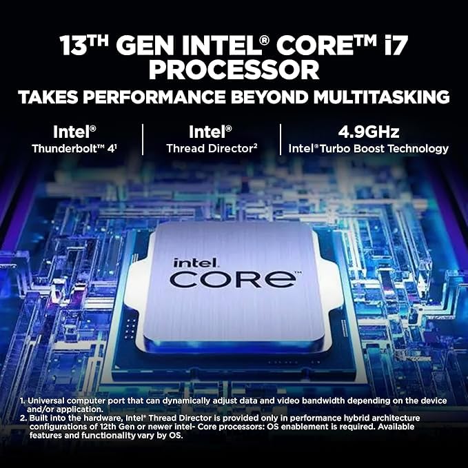 • Processor, Memory & Storage: Intel Core i7-13620H (up to 4.9 GHz with Intel Turbo Boost Technology, 24 MB L3 cache, 10 cores, 16 threads)| Memory: 24 GB DDR5-5600 MT/s (1 x 24 GB)| Storage: 1 TB PCIe Gen4 NVMe M.2 SSD