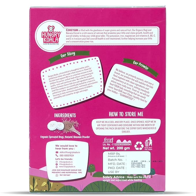 HUNGRY KOALA Ragi Banana Cereal Made With Natural Ingridients For Kids To Grow Healthy No Preservative Or Additives Or Maida (200 Grams)