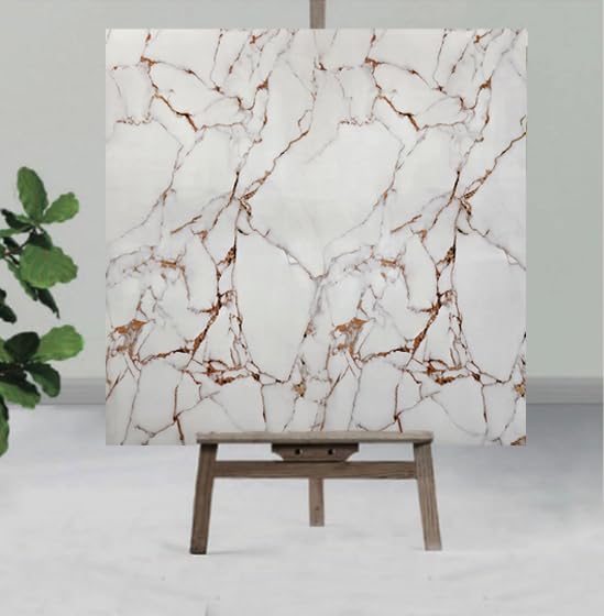 INFINITY DECOR White with Golden Texture Marble UV Panels Marble UV Sheets, self Adhesive Wall Tile (60 cm * 60 cm),Marble Look Wall Panels for Homes and Offices, self Adhesive Wallpaper(Pack of 5)