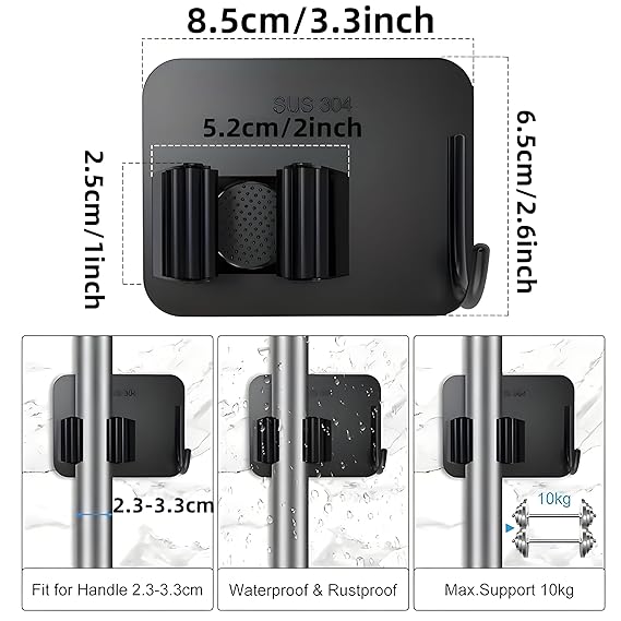 • ◘【EASY TO INSTALL】: This wall mounted mop broom clip hanger for heavy duty tools is easy and convenient to install. Just stick it to the wall with a strong self-adhesive that will hold your mop firmly in place and protect it from falling.