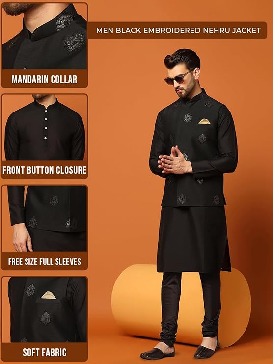 • ELEGANT FIT – The sleeveless Modi jacket design with a mandarin collar and embroidered detailing gives you a refined silhouette, perfect for ethnic, Indo-western, or office party looks.