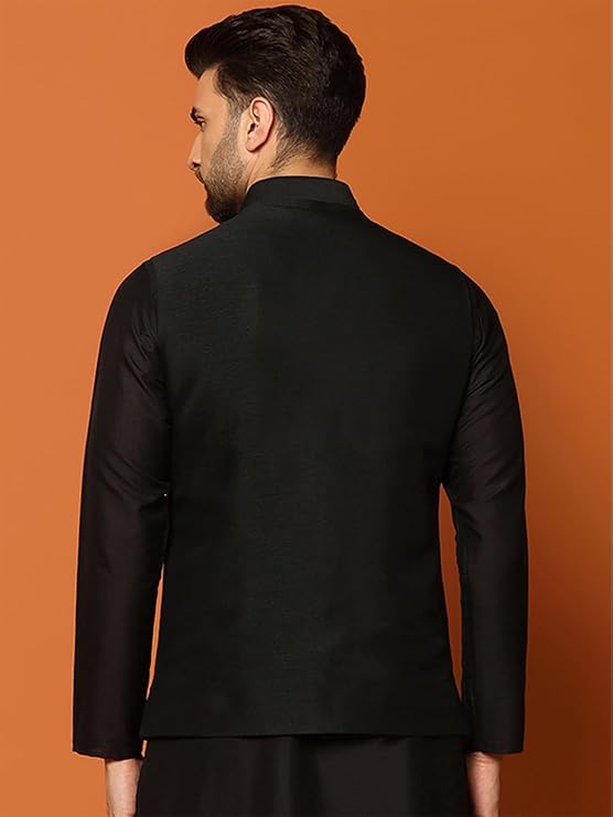 Kisah Men's Nehru Jacket Black Ethnic Festive Traditional Waistcoat Cotton, Regular Fit