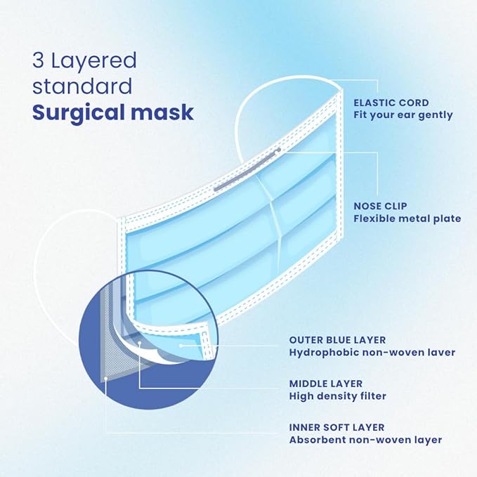 • Pack of 100 | Disposable & Hygienic Masks : Comes in a value pack of 100 disposable blue surgical masks, perfect for men, women, healthcare workers, offices, travel, and home use.