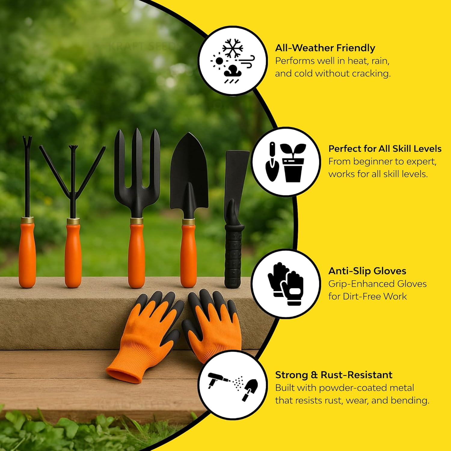 Kraft Seeds Home Tools, 6Pcs Gardening Tools Kit for Home Garden - (Cultivator, Fork, 2 Trowels, Weeder, Gloves), Lightweight, Portable, Durable Gardening Items for Indoor & Outdoor Use, Gardening kit