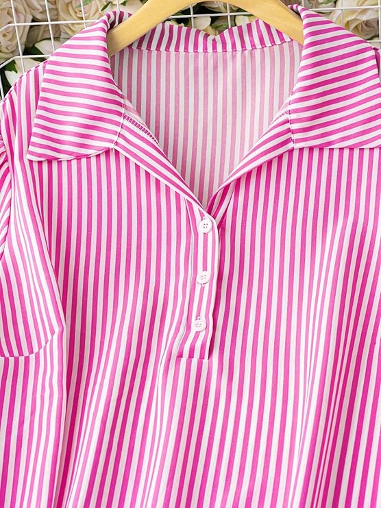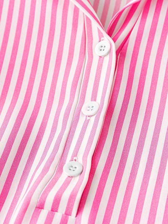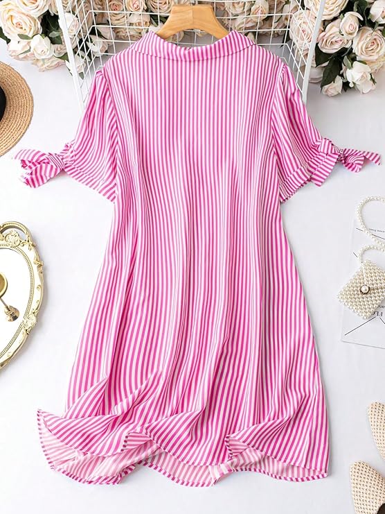 Leriya Fashion Striped Shirt Style Mini Dress for Women | Collared Casual A-Line | Tunic with Tie Sleeves & Front Buttons