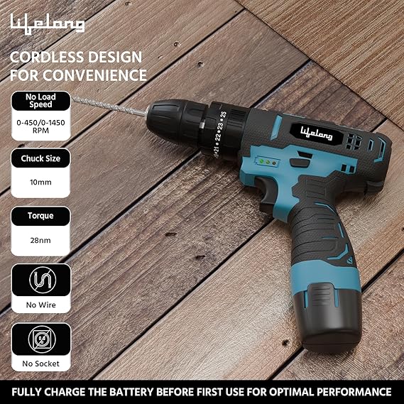 • 🔋Cordless & Rechargeable: Experience true freedom with cordless design. Recharge anytime and easily carry your Lifelong drill anywhere without the hassle of being tethered to a cord.