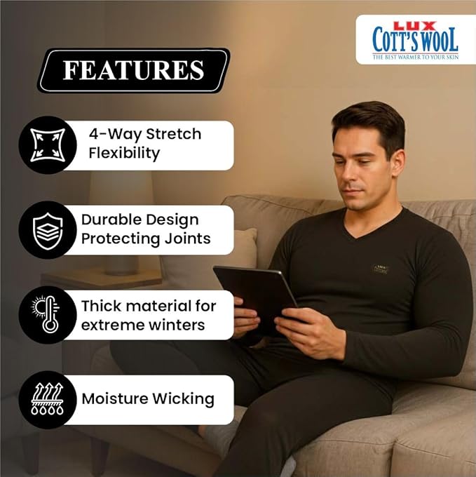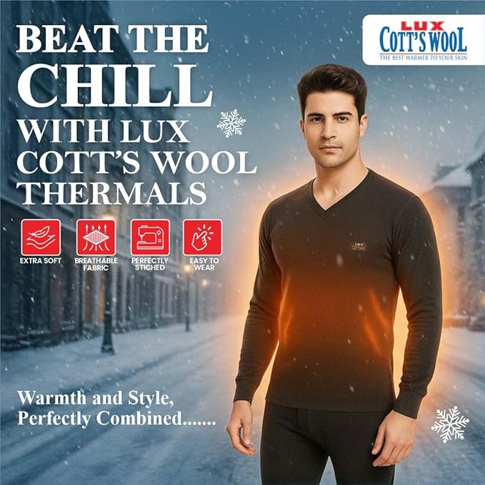 • ★ 𝑫𝑼𝑹𝑨𝑩𝑳𝑬 𝑾𝑰𝑵𝑻𝑬𝑹 𝑬𝑺𝑺𝑬𝑵𝑻𝑰𝑨𝑳𝑺 – Crafted for long-lasting comfort, the winter wear thermal combines premium cotton and soft wool for superior durability. Its snug fit, full sleeves, and V-neck design ensure maximum warmth, while the Stay Warm Technology locks in heat without compromising breathability. Don’t wait—order now to stay protected in style this winter!