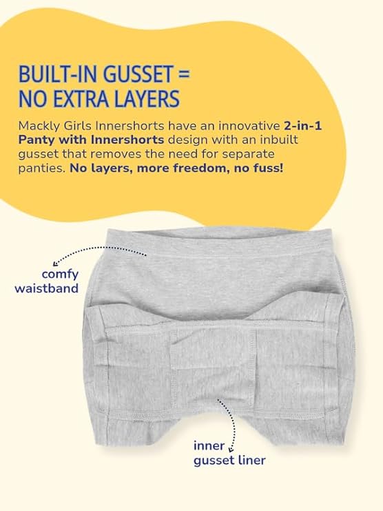 • Freedom of Movement: Mackly Inner shorts allow girls to move freely and confidently. They offer the necessary coverage for activities like running and spinning, making them perfect for school days and sports.