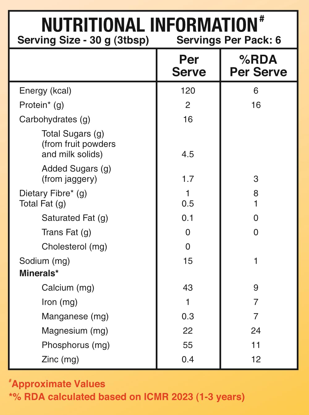• Enriched with 3 Fruits - Mango, Banana and Dates Powder
