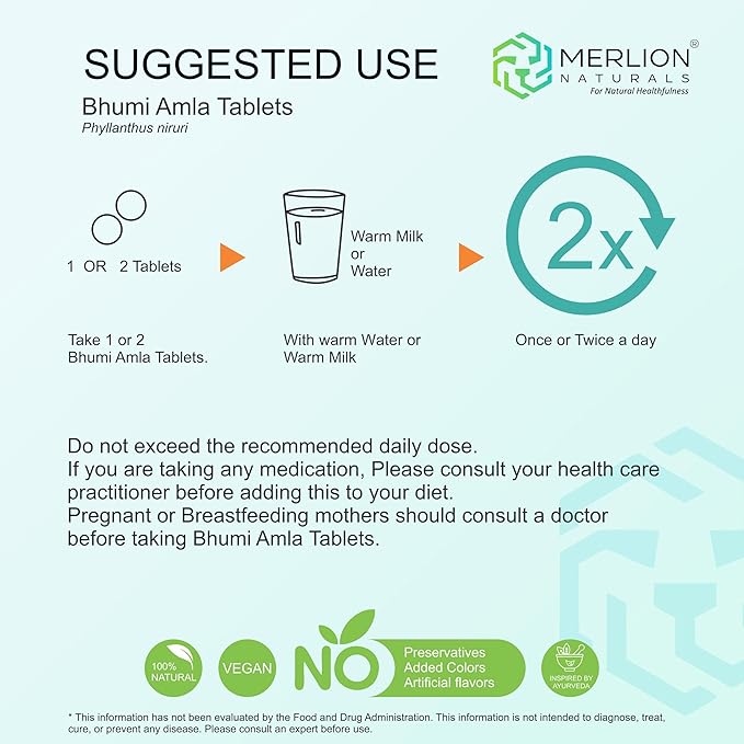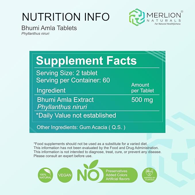 Merlion Naturals Bhumi Amla Tablets, Phyllanthus niruri, 500mg (120 Tablets)