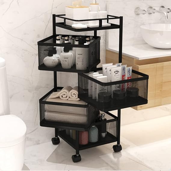 Metal Kitchen Trolley Kitchen Organizer Items and Kitchen Accessories Items for Kitchen Rack Square Design for Fruits & Vegetable Onion Storage Kitchen Trolley with Wheels (4 Layer)