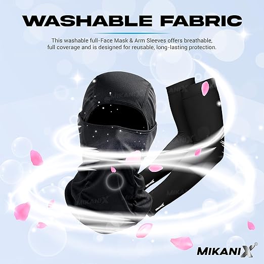 • Comfortable Fit: Non-slip design ensures the mask and sleeves stay in place during long rides.