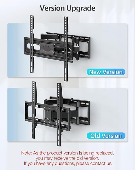 • OPTIMAL VIEWING EXPERIENCE: Full motion TV mount moves flexibly to tilt screen up 5° and down 10° for reducing glare, swivel TV left or right 45° for comfortable viewing angles. TV bracket provides post-install 3° leveling capability and supports 2.7@ to 14.5@ wall distance adjust flexibility