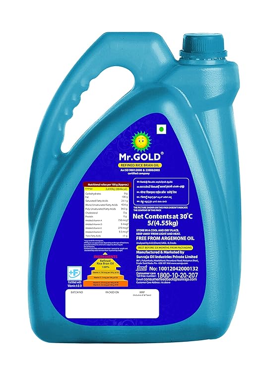 Mr. Gold Refined Rice Bran Oil Can, 5 L | Pure| No preservatives | Natural | Vitamin Enriched - Total 5L