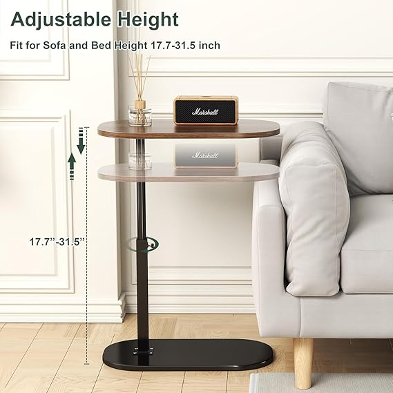 MTANK Height Adjustable End Table for Bed| Sofa Side Table| Rolling C Table for Couch/Bed| 360 Degree Moving Table with Metal Finish|