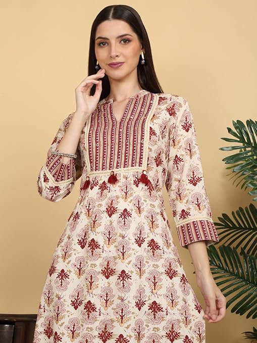 • Beautiful Floral Print: Features an elegant beige base with eye-catching flower patterns for a refined ethnic look.