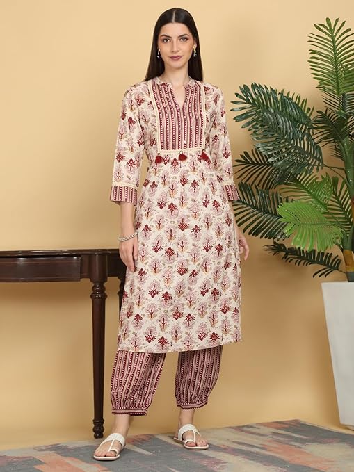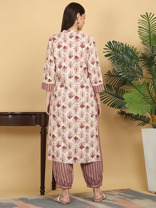 • Matching Kurta & Pant Set: Comes with a coordinated straight-fit kurta and stylish printed pant for a complete traditional outfit.