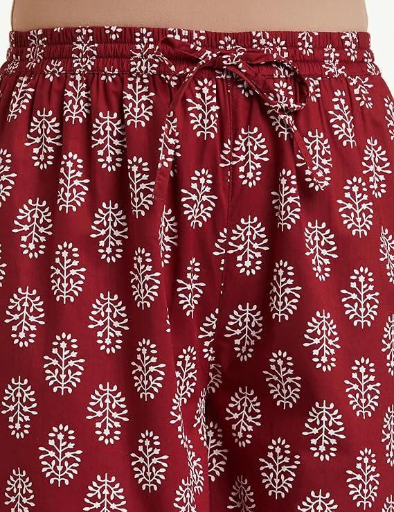• PRODUCT DETAILS: Ankle length, flared fit featuring all over screen print with elasticated waistband and waist tie-up.