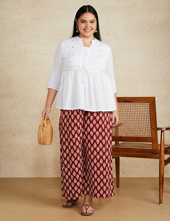 • STYLE TIPS: Pair with kurtas or tunics, add statement jewellery and ethnic flats for a chic look.