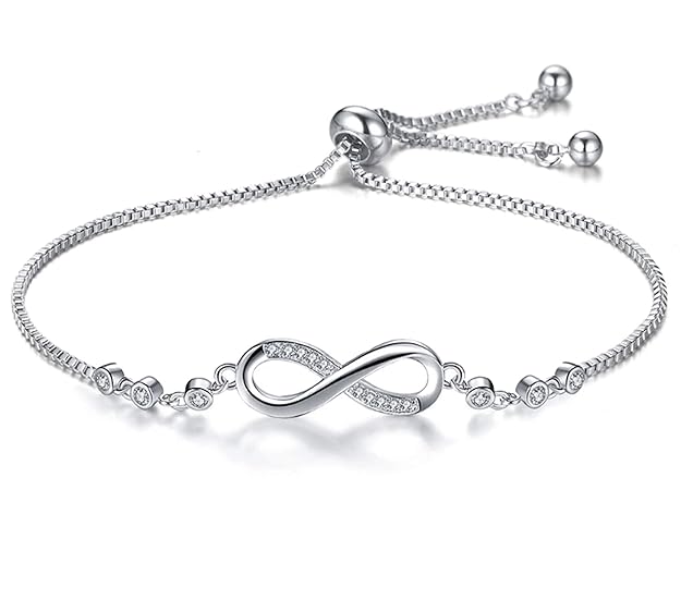 Nilus Collection Infinity Shape Cubic Zirconia Diamond Bracelet for Women Jewelry for Gift, Adjustable Charm Bracelet