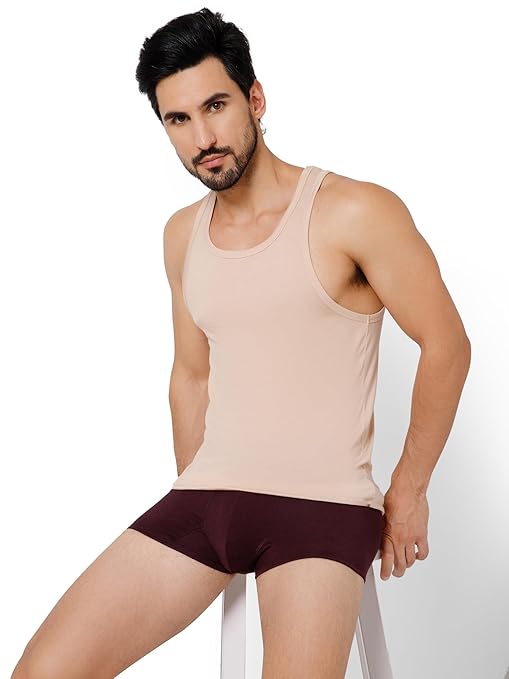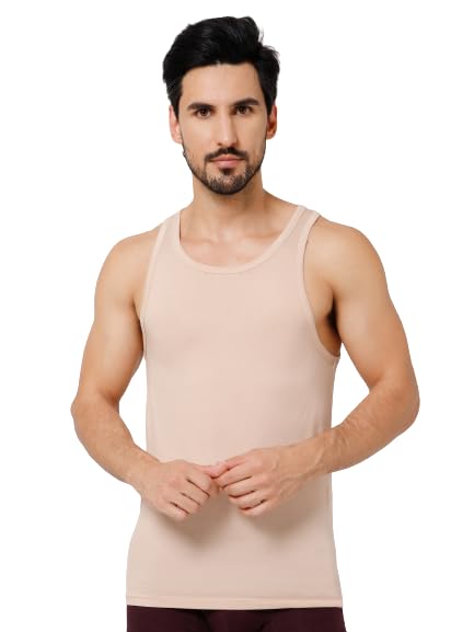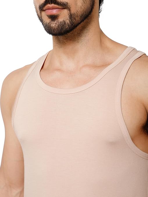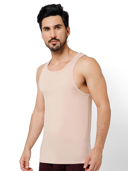 OXYZONE Men Modal Vest Super Soft Solid Round Neck Sleeveless Baniyan Innerwear for Men, Breathable, Odour-Free, Anti Bacterial Finish Regular Fit Undershirt