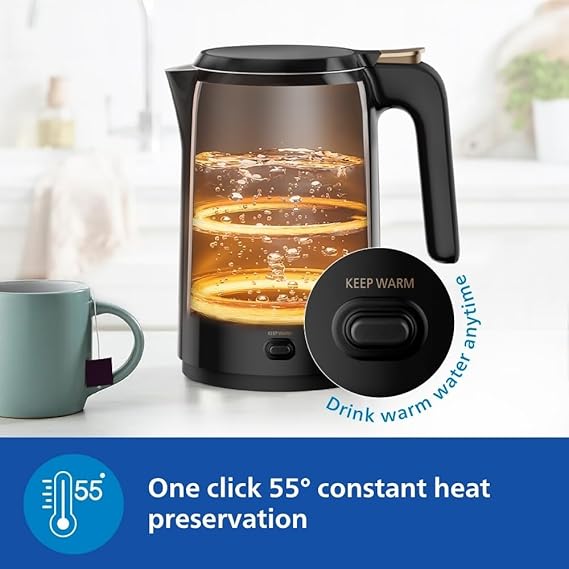 Philips Double walled electric kettle with Keep Warm function, 1.5L, 1300W, Auto shut off, 2yrs Warranty (HD9378/80)