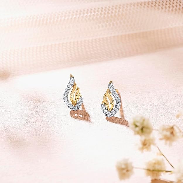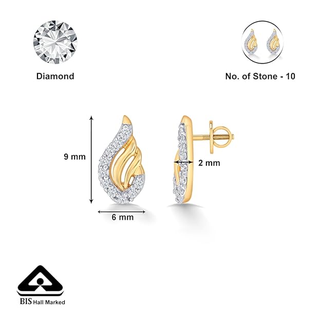 • This diamond gold stud earring is made from BIS Hallmarked 14 karat Purity of Gold and Diamond is certifified with IJ-SI clarity for Women. is perfect for casual wear and ideal for festive gift