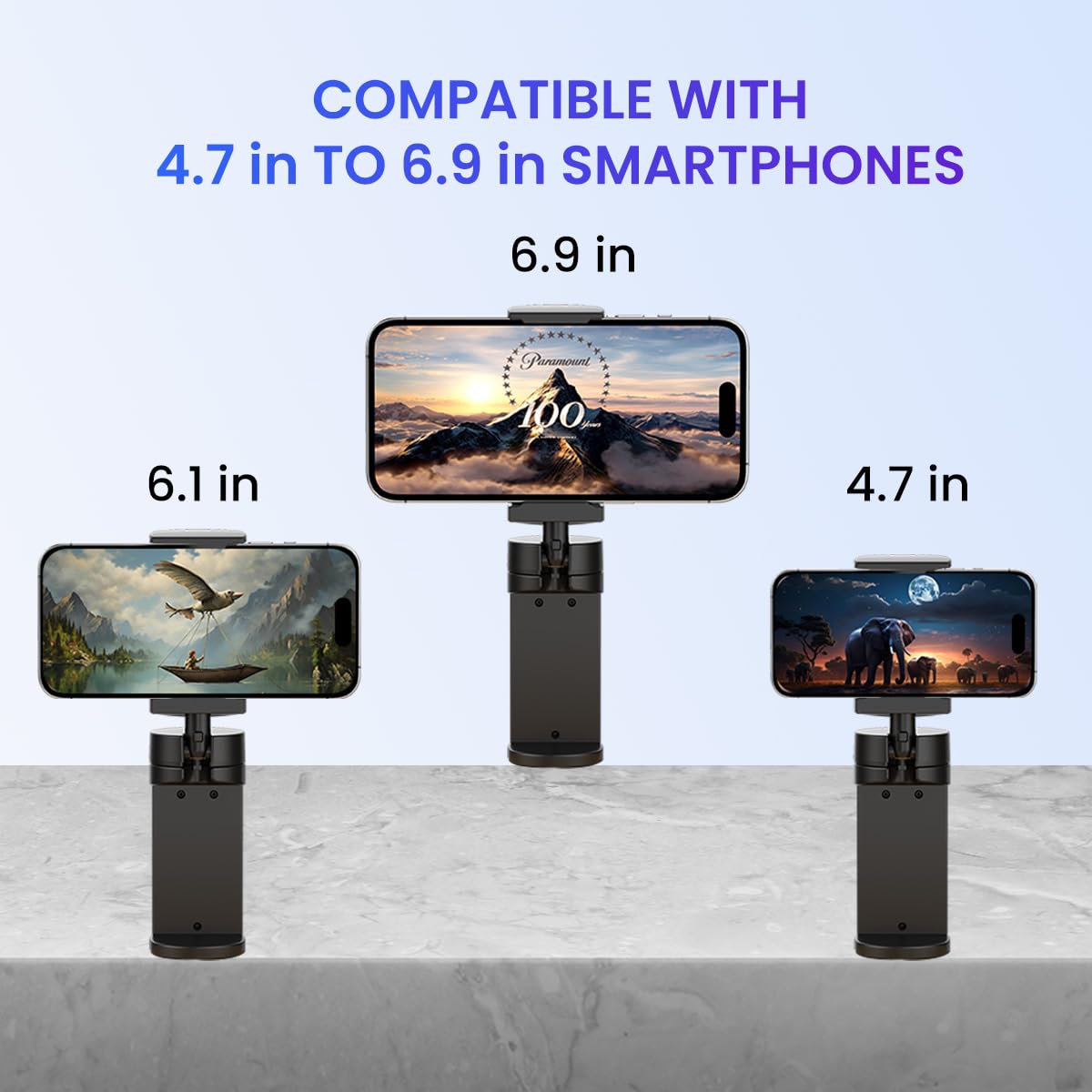 • Wide Compatibility: Our phone holder can accommodate a wide range of smartphones, ranging from 4 inches to 6.4 inches. The base clip opens up to 1.77 inches (45mm), ensuring a fit for various setups like tables or other objects.