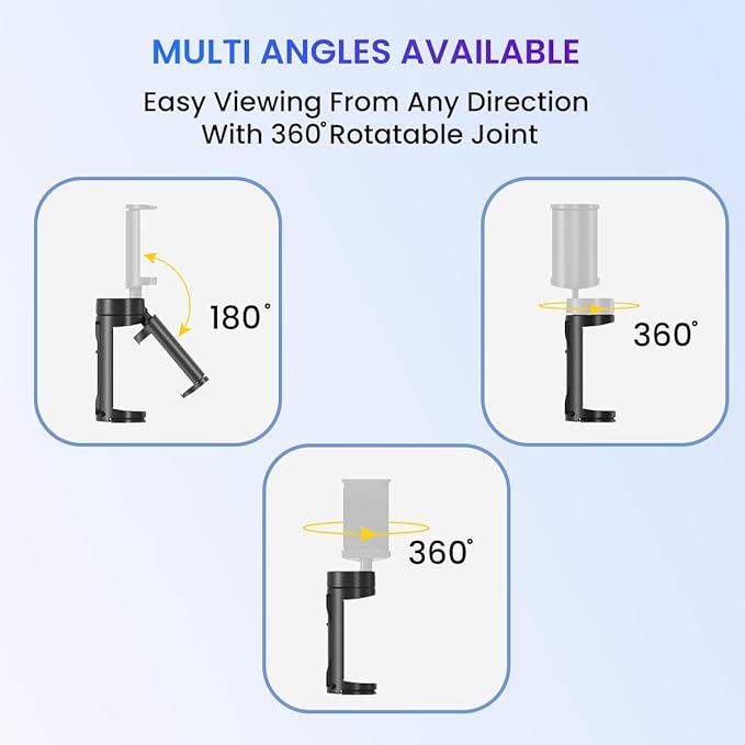 • Customizable Viewing Angles: Explore a wide range of viewing angles using the holder’s 360°+360°+180° rotation, and set your phone on the desired angle, keeping your neck and back in a comfortable posture.