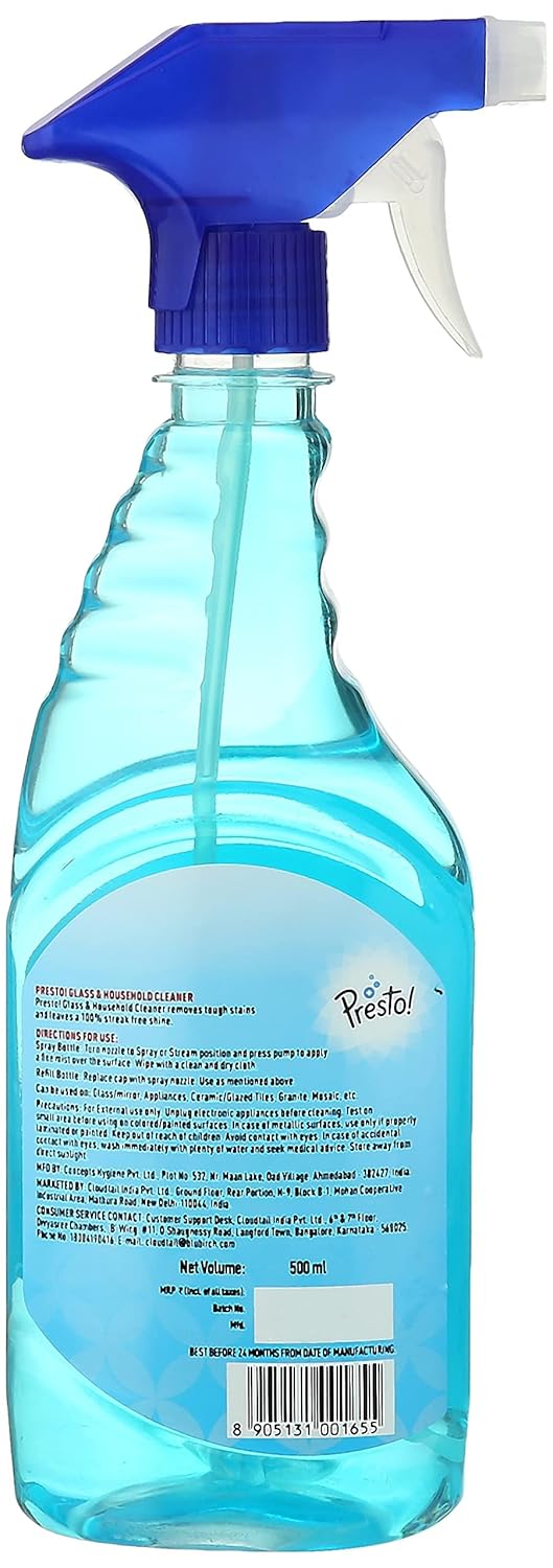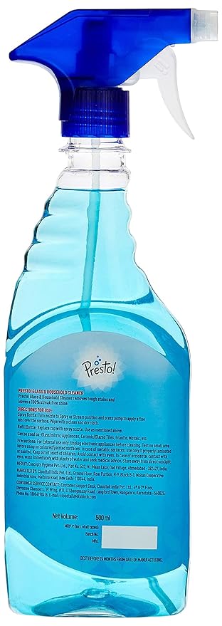 • Multi-purpose glass and household cleaner which can be used on glass, mirrors, appliances like TVs microwaves, ceramic tiles, glazed tiles, granite, etc.