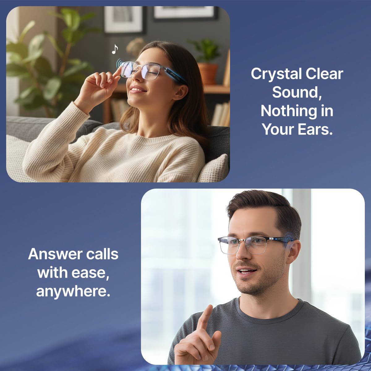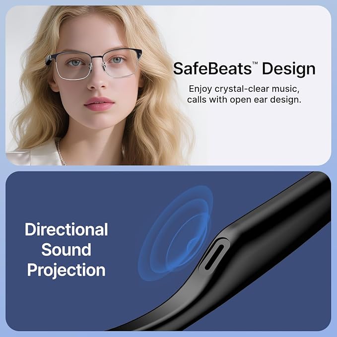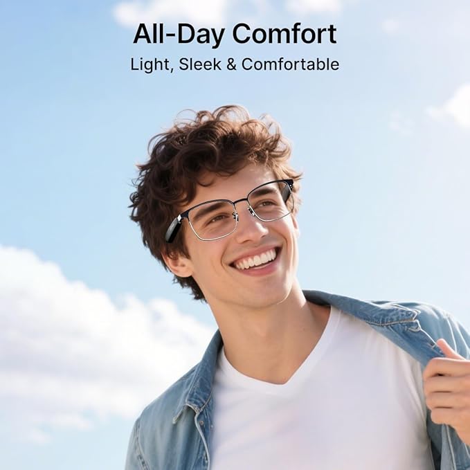 • Lightweight & Secure for All-day Comfort || Lenses Reduce Eye Strain from Digital Screens || 10mm Drivers Deliver Stereo Sound || Built-in HD Mic Ensures Clear, Hands-free Calls