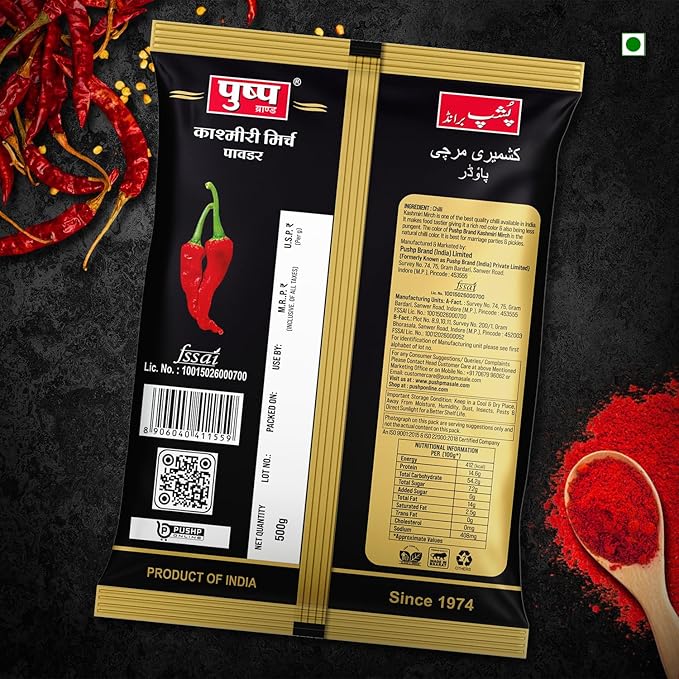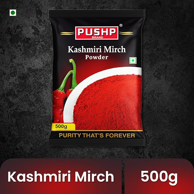 Pushp Brand Kashmiri Red Chilli Powder (Pouch Pack of 1, 500gm)