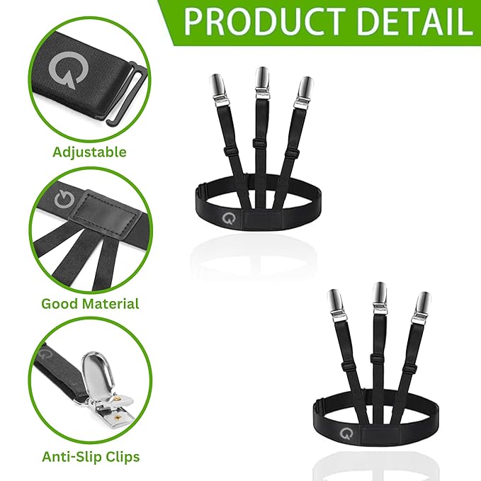 QUALIFT Shirt Tucker for Men - Skin-Friendly Soft Elastic Shirt Stays, Adjustable Shirt Garter Belt, Formal Shirt Holder with Non-Slip Strong Grip Clasp, Mens Tuck in Belt, Accessories for Man