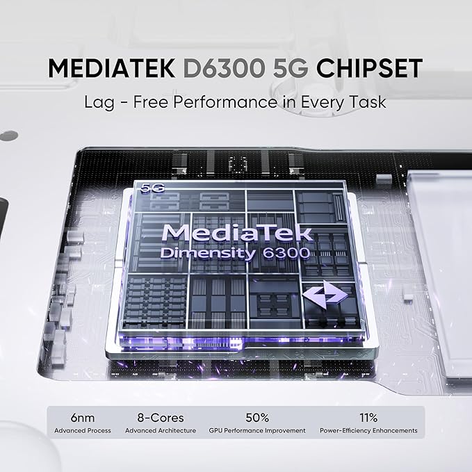 • MediaTek Dimensity 6300 5G: Enjoy fast and reliable 5G connectivity with a power-efficient processor.