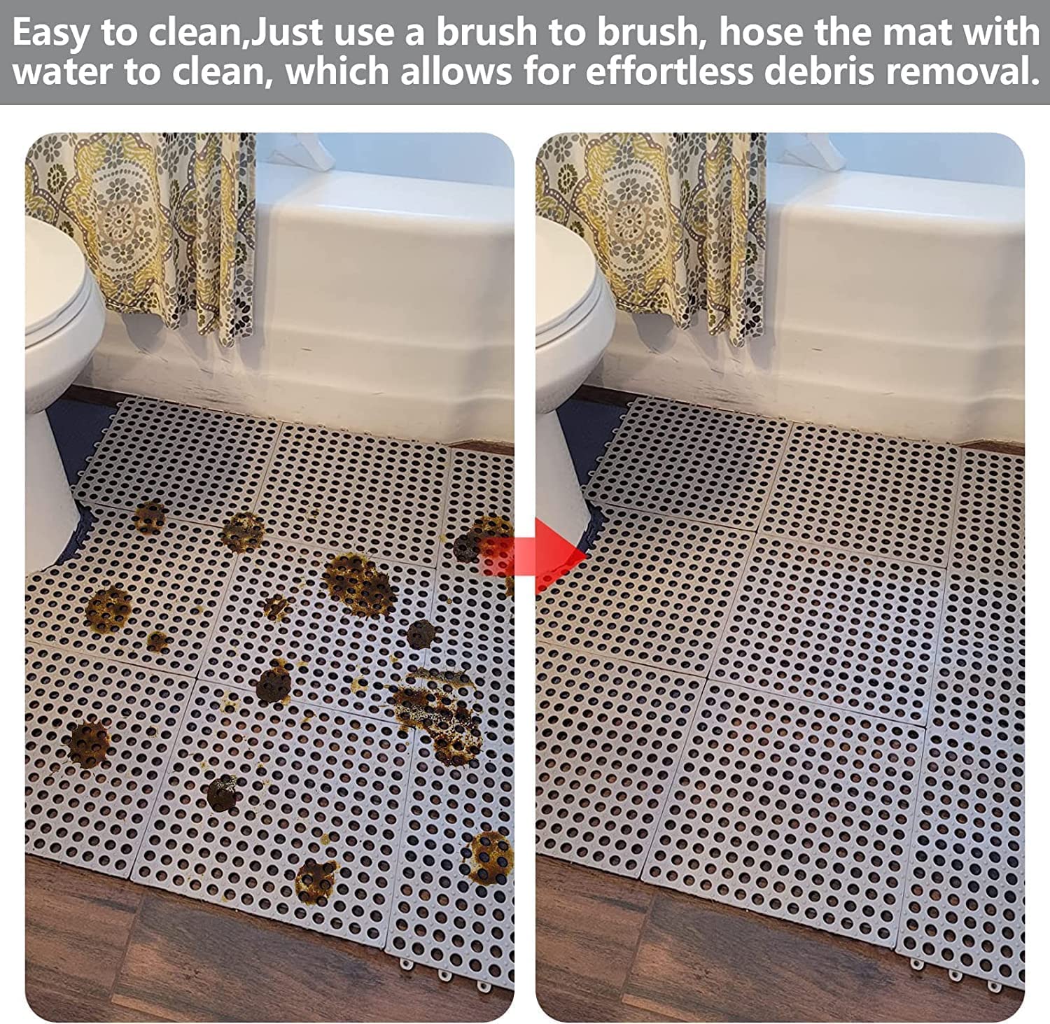 • MULTIPURPOSE USE: Ideal for wet and slippery areas. Use them in shower stalls, locker rooms, saunas, kitchens, balconies, pet areas, or even as a garage floor mat.