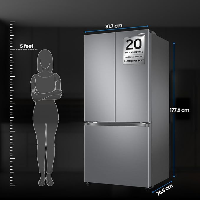 REF Samsung 550 L, Convertible, Digital Inverter, Frost Free French Door Refrigerator (RF57A5032S9/TL, Silver, Refined Inox)