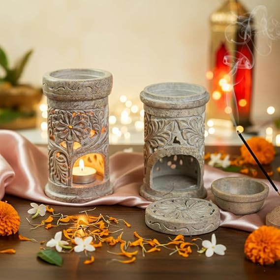 • Hand-Carved Camphor Diffuser Burner - It is designed with unique floral patterns meticulously carved by skilled artisans, making each piece truly one of a kind.
