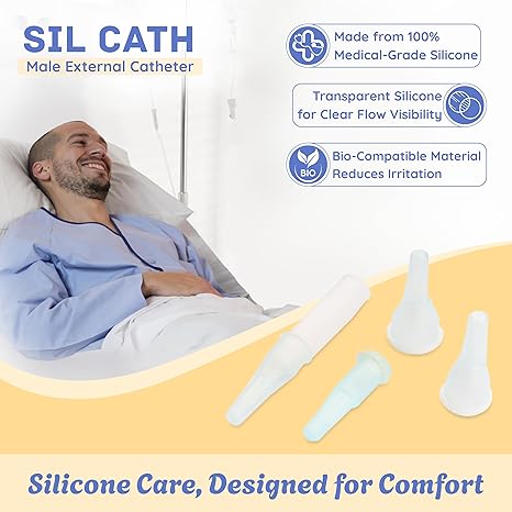 • The Romsons Sil Cath Male External Catheter is made of 100% silicone material.