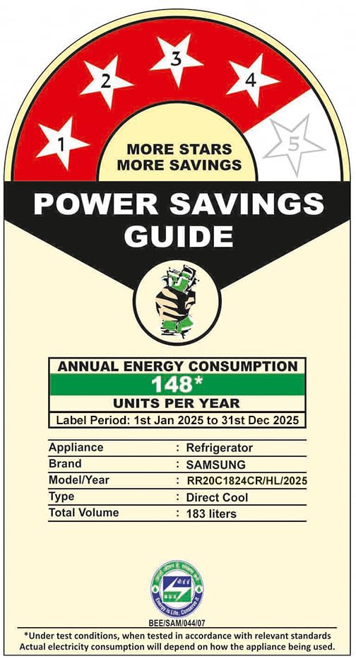 • Capacity 183 liters: Suitable for families with 2 to 3 members