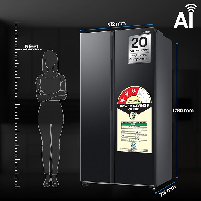 • Bespoke Side By Side Frost-Free Refrigerators: Bespoke Refrigerator with AI. With Convertible 5in1 mode best optimize your storage needs : |Normal Mode|Extra Fridge Mode|Seasonal Mode|Vacation Mode|Home Alone Mode
