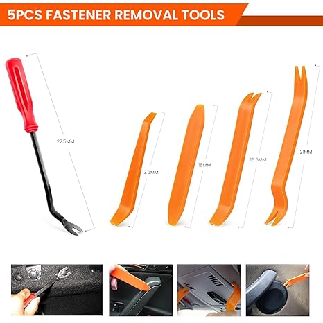 • UTILITY ACCESSORIES INCLUDED: We provide you with various helpful tools, including different-sized fastener removers, sponge cushions, and cable ties, different clip easily remove car door panels and upholstery clips without causing any damage, even in tight spaces.