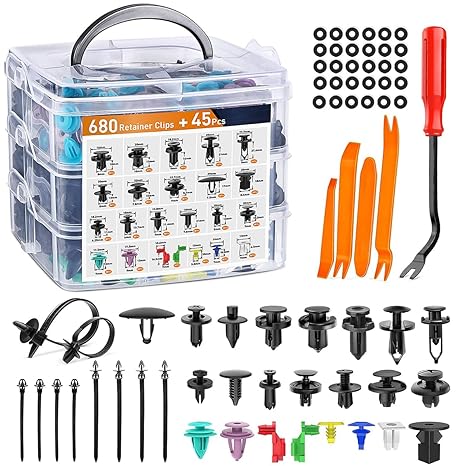 • VERSATILE DIY ACCESSORIES: This car retainer rivet push fastener clips set with up to 680 pieces of retainer clips in a convenient plastic box, this kit allows you to freely customize and enhance your vehicle at any time. It's a cost-effective alternative to visiting an auto parts store.