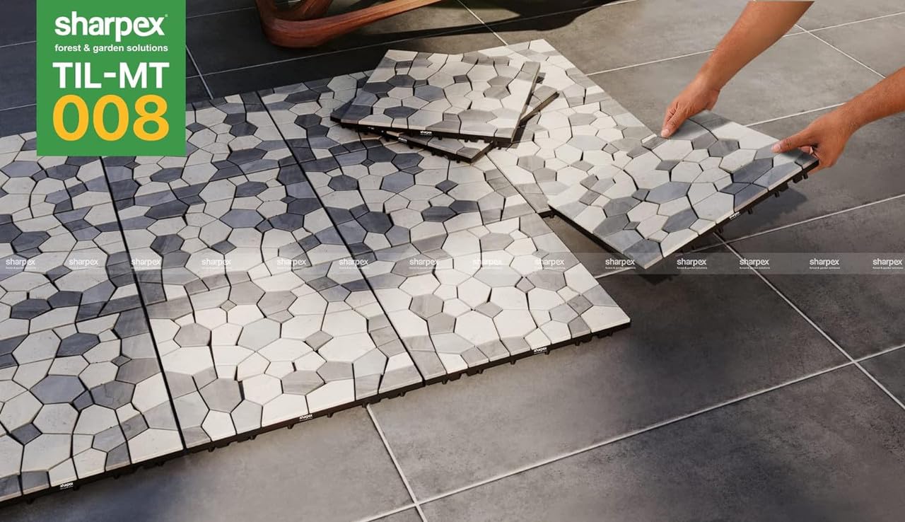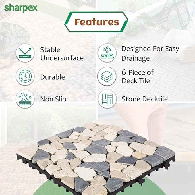 Sharpex Stone Deck Tiles with Interlocking | 6 Piece Stone Floor Decking Water Resistant Tile for Balcony, Terrace, Garden, Poolside | Quick Flooring Solution for Indoor/Outdoor (Stone, 6 Piece)