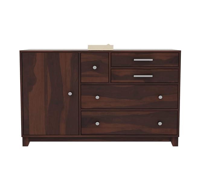 Sheesham Wood Wooden Chest of Drawers: 4 Drawers & 3 Shelves Sideboard Dresser with Ample Storage Space (Harold)