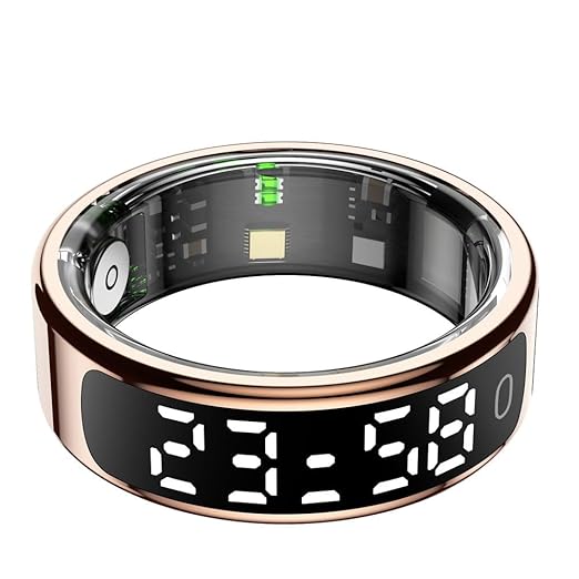 Smart Ring with Built-in LED Display • Health Monitoring (HR, SPO₂, Sleep Tracking, Steps) • IP68 Waterproof • 5-Day Battery • Stainless Steel (Rose Gold, 8-18.2 mm)