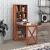 Solid Sheesham Wood Foldable Study Table with Bookshelf & Storage Cabinet | Rosewood Study Desk for Home & Office (Natural Finish)