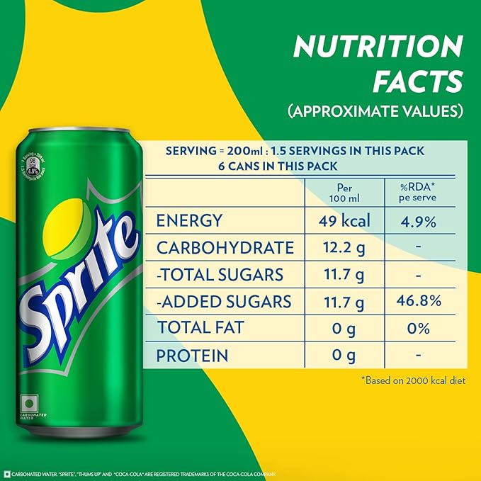 Sprite Lemon-Lime Flavoured Cold Drink | Refreshing Taste | Clear Soft Drink with No Added Colours | Recyclable Can, 300 ml (Pack of 6)